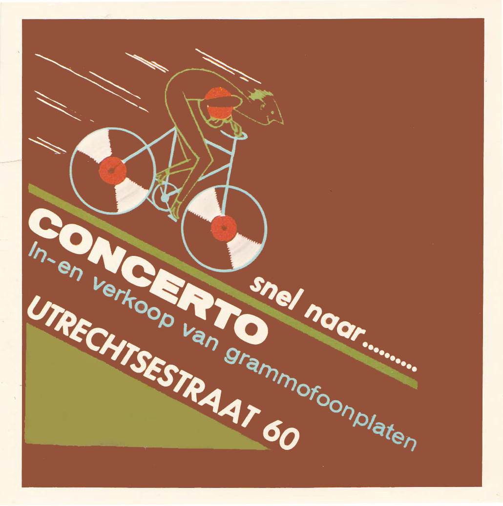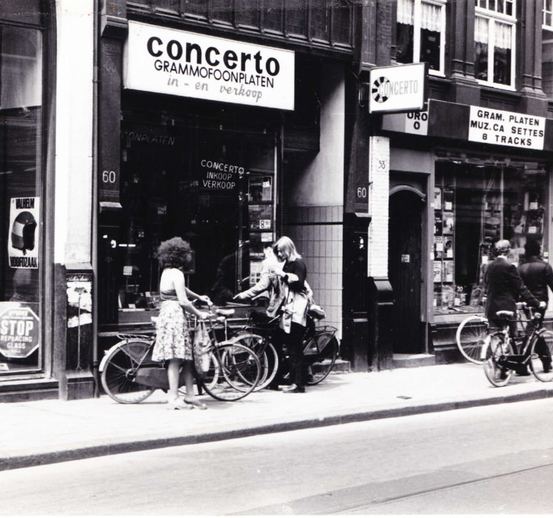 “Aanvankelijk was de zaak een winkel in muziekinstrumenten. Gijs Molenaar wilde wel grammofoonplaten verkopen, maar kreeg daarvoor geen vergunning, omdat verderop in de Utrechtsestraat al een platenzaak was gevestigd. Tweedehandsplaten verkopen mocht hij wel. Maar waar haalde je die in de jaren vijftig vandaan? Molenaar sloeg zijn slag toe hij een partij van duizend 78-toerenplaten op het spoor kwam. Langzaam maar zeker maakten in Concerto de instrumenten plaats voor tweedehands platen. Ook toen de zaak werd toegestaan nieuwe platen te verkopen, bleef de tweedehandsafdeling behouden. In de jaren zestig zette zoon Wouter een popafdeling op”….